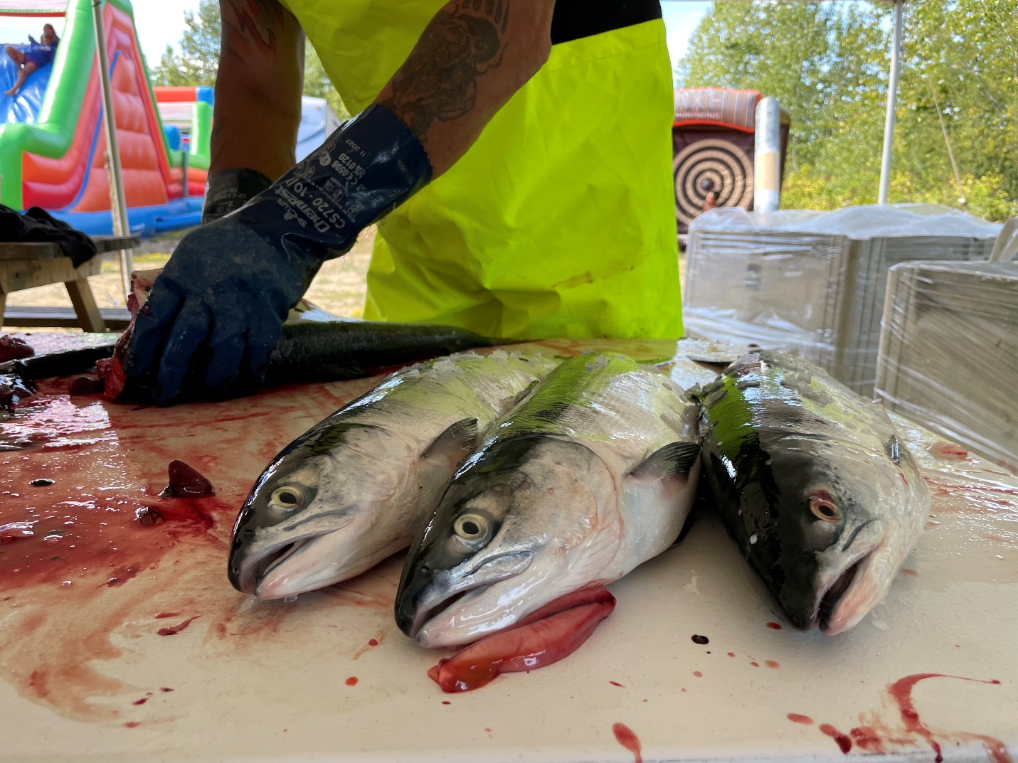 SȾÁUTW̱ Fisheries works hard to provide the community with access to food, social and ceremonial (FSC) seafood through fish distributions. Catching and distributing seafood directly to the community provides healthy, culturally grounded food without relying on external systems. Food fish distributions take up time and resources and the timing of the distributions are often dependent on weather, fishers, community events, staff availability, and the fish runs.