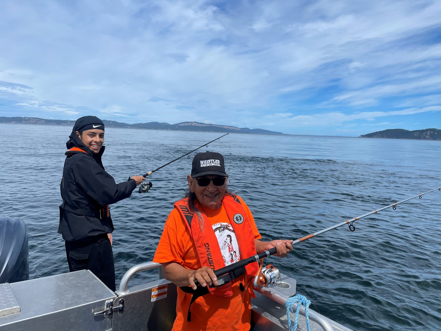 We have prioritized developing skills and procuring fishing equipment within the Nation to provide opportunities for community to get out on the water. Training community members to fish for themselves is a core part of Food Sovereignty and our programming. Teaching youth, families, and those reconnecting to their roots helps restore skills that have always been central to community wellbeing. Through this programming we want to encourage knowledge transfer between generations and create opportunities to learn from community fishers.