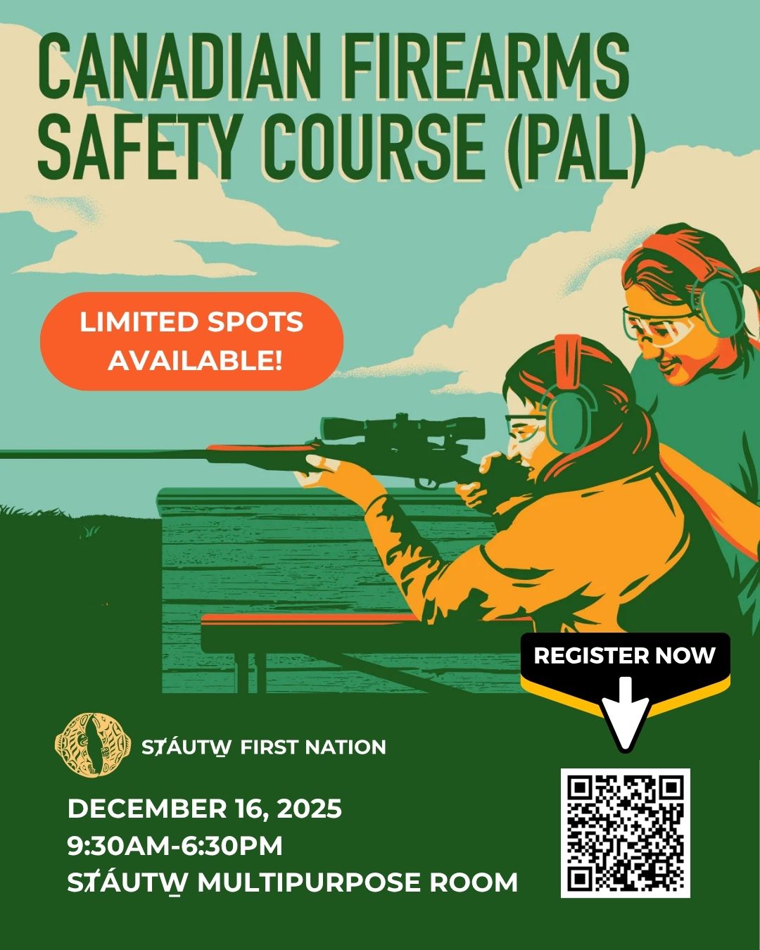 SȾÁUTW̱ First Nation is excited to be hosting the PAL (Possession & Acquisition License) Canadian Firearms Course.